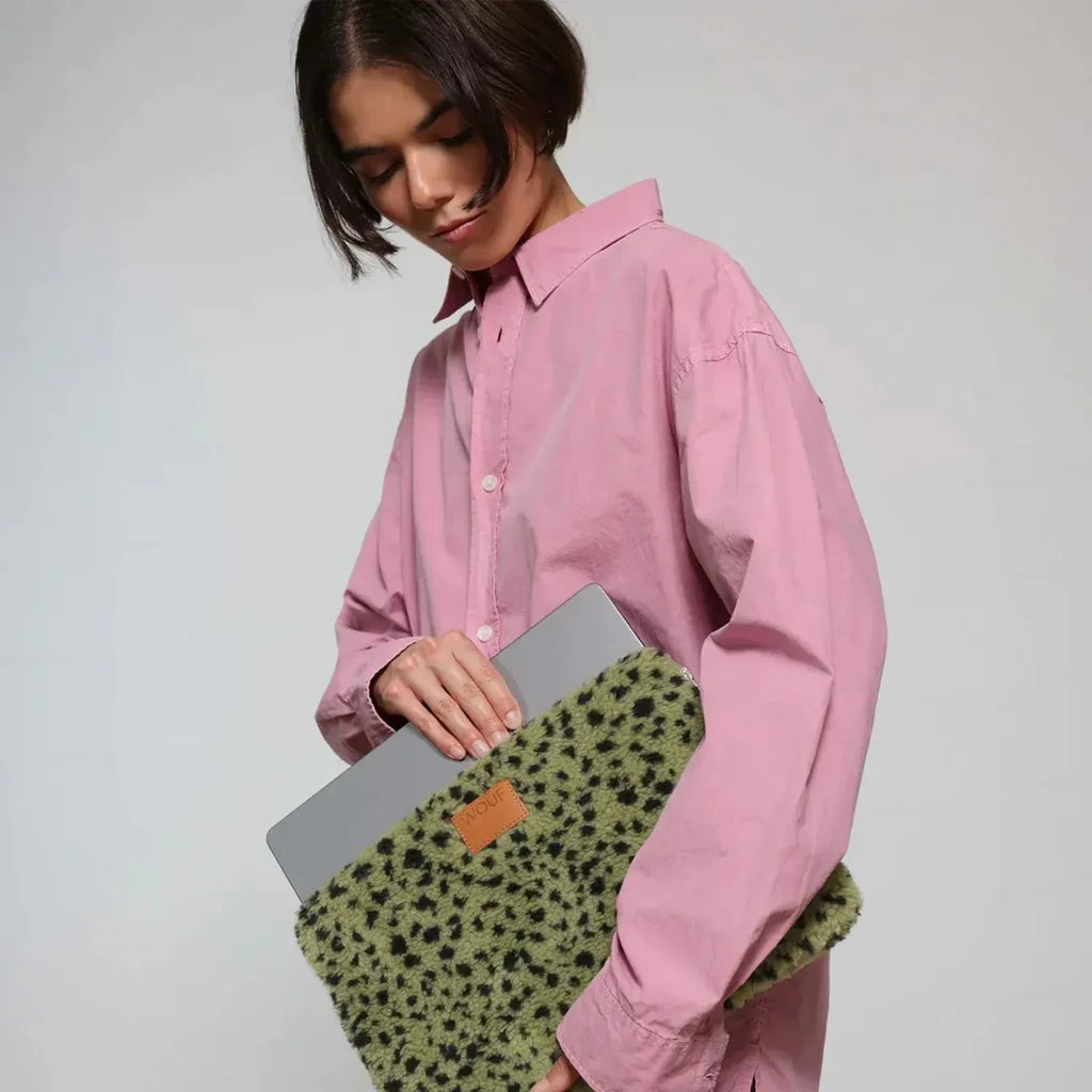 תיק למחשב מבד דמוי פרווה מבית WOUF ספרד – כשהסטייל והאחריות הסביבתית נפגשים.