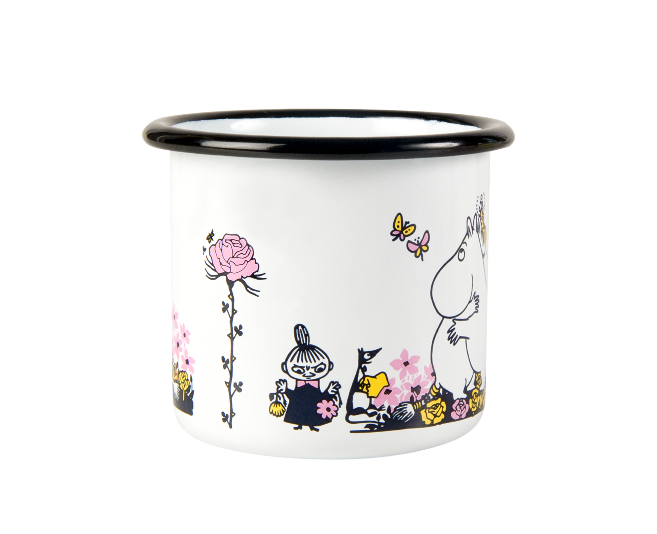 הספל עשוי מבסיס פלדת פחמן מצופה בשתי שכבות אמייל. בעל ידית נוחה לשימוש, הספל מעוצב עם האיורים שובי הלב של היצורים הכי חמודים ביקום - המומינים.