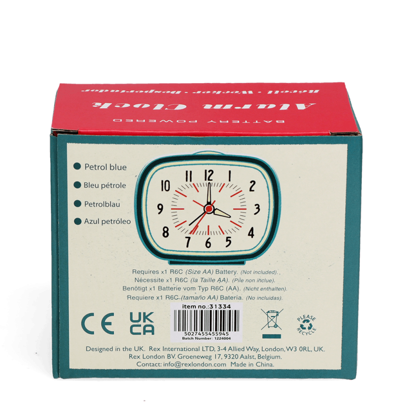 שעון מעורר זה הוא תוספת משמחת לכל חדר שינה. הוא עשוי פלסטיק ורוד  ומעוצב בסגנון רטרו קלאסי. השעון כולל מספרים גדולים הקלים לקריאה, וכן פעמון מעורר חזק