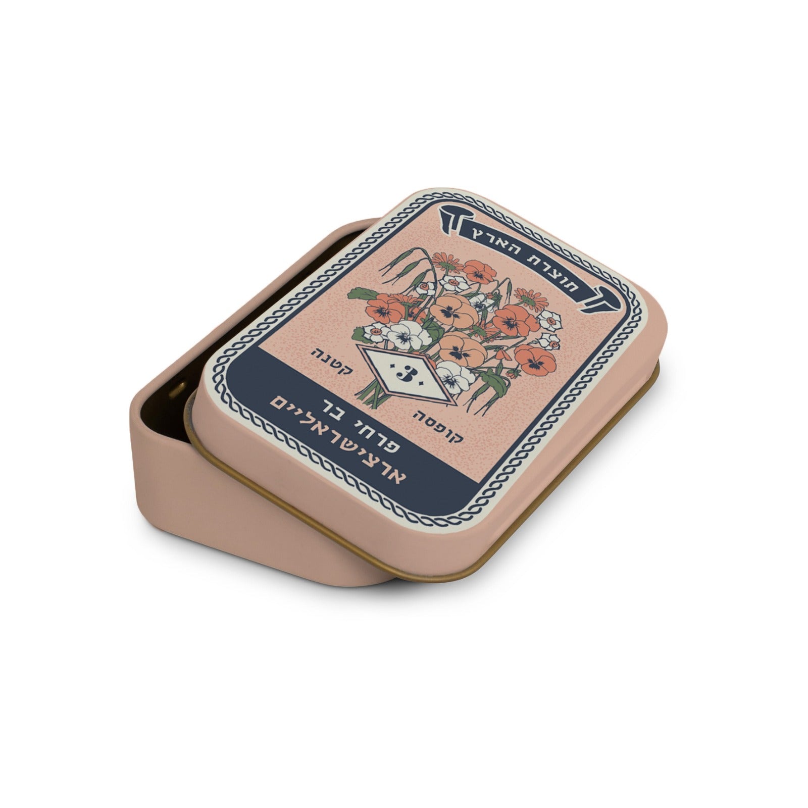 קופסת פח מעוצבת עם איורים מקוריים מתוך הקולקציה המשותפת של Yooletta וסטודיו toi et moi ההמעמידה במרכזה בעלי-חיים וצמחים ארצישראליים,