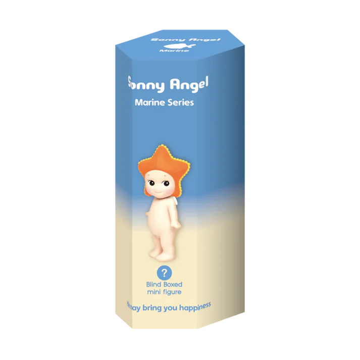 בובה מסדרת Sonny Angel Marine, נארזת באופן יחידני בתוך קופסת הפתעה ("Blind Box").