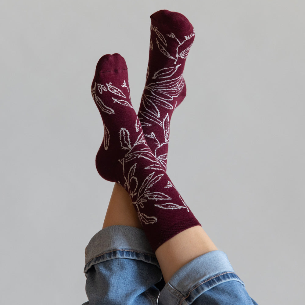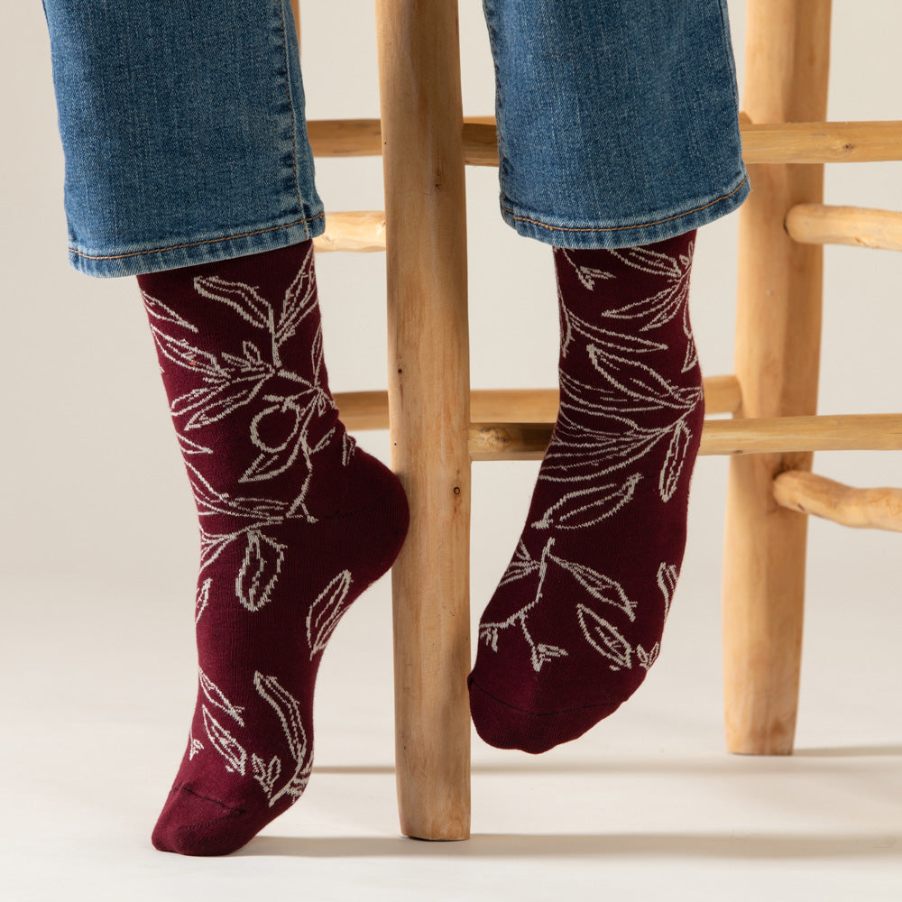 זוג גרבי כותנה נעימים בעיצוב איור ידני מתוך סדרת עלי זית. העיצוב הקווי והמינימליסטי מציג ענפי זית עדינים, בהשראת העץ הגלילי המשגשג באזור מזה אלפי שנים. ענפי הזית הם סמל עתיק לתקווה, לחיבור ולאורך רוח..