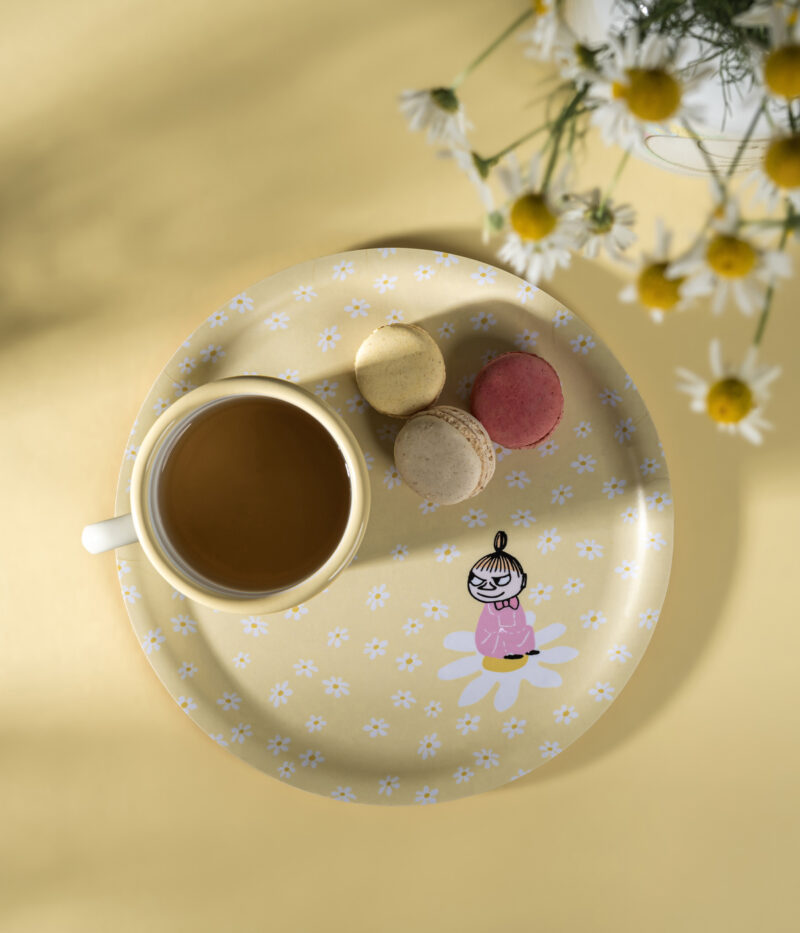 מגש עגול מקולקציית Flowers של המומינים, בקוטר 25 ס"מ. הפרחים – חינניות, ורדים ושינניות בגווני לבן, צהוב בהיר ופסטלים רכים – יוצרים אווירה אביבית ורעננה שמכניסה אור ושמחה לכל שולחן.