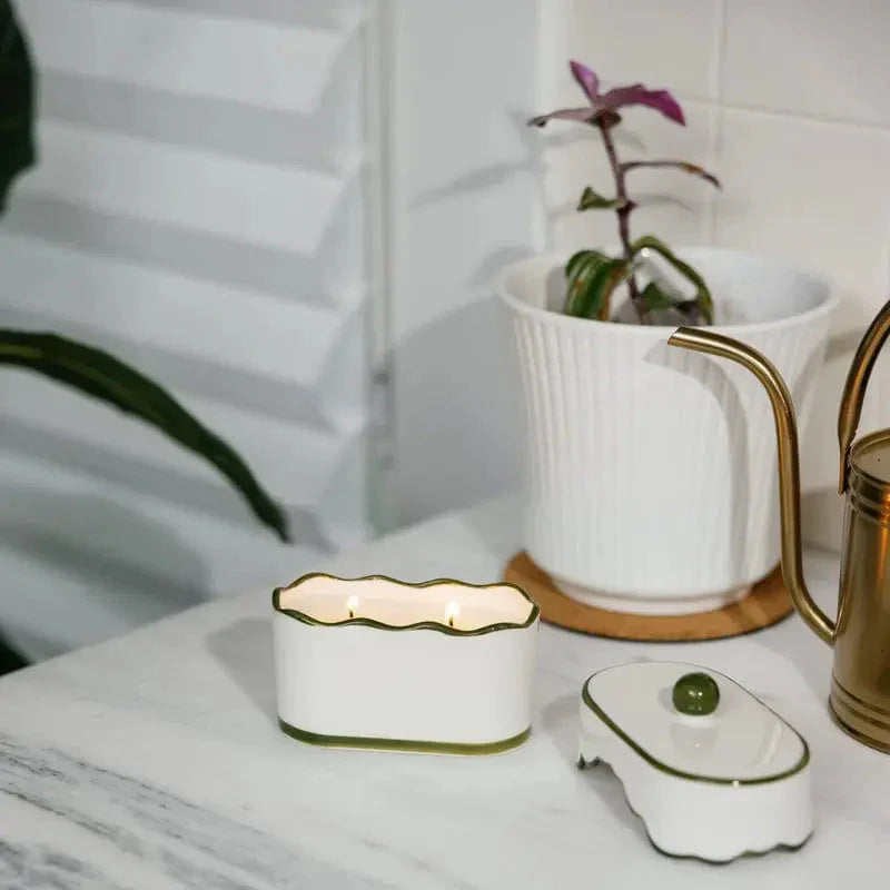 לנר שני פתילים שמספקים בעירה מאוזנת, והוא מגיע בכלי פורצלן בסגנון וינטג׳ עם מכסה תואם ושוליים צבועים בעבודת יד – תענוג ויזואלי לא פחות מארומטי. מושלם כמתנה לעצמך או לחברה אהובה.